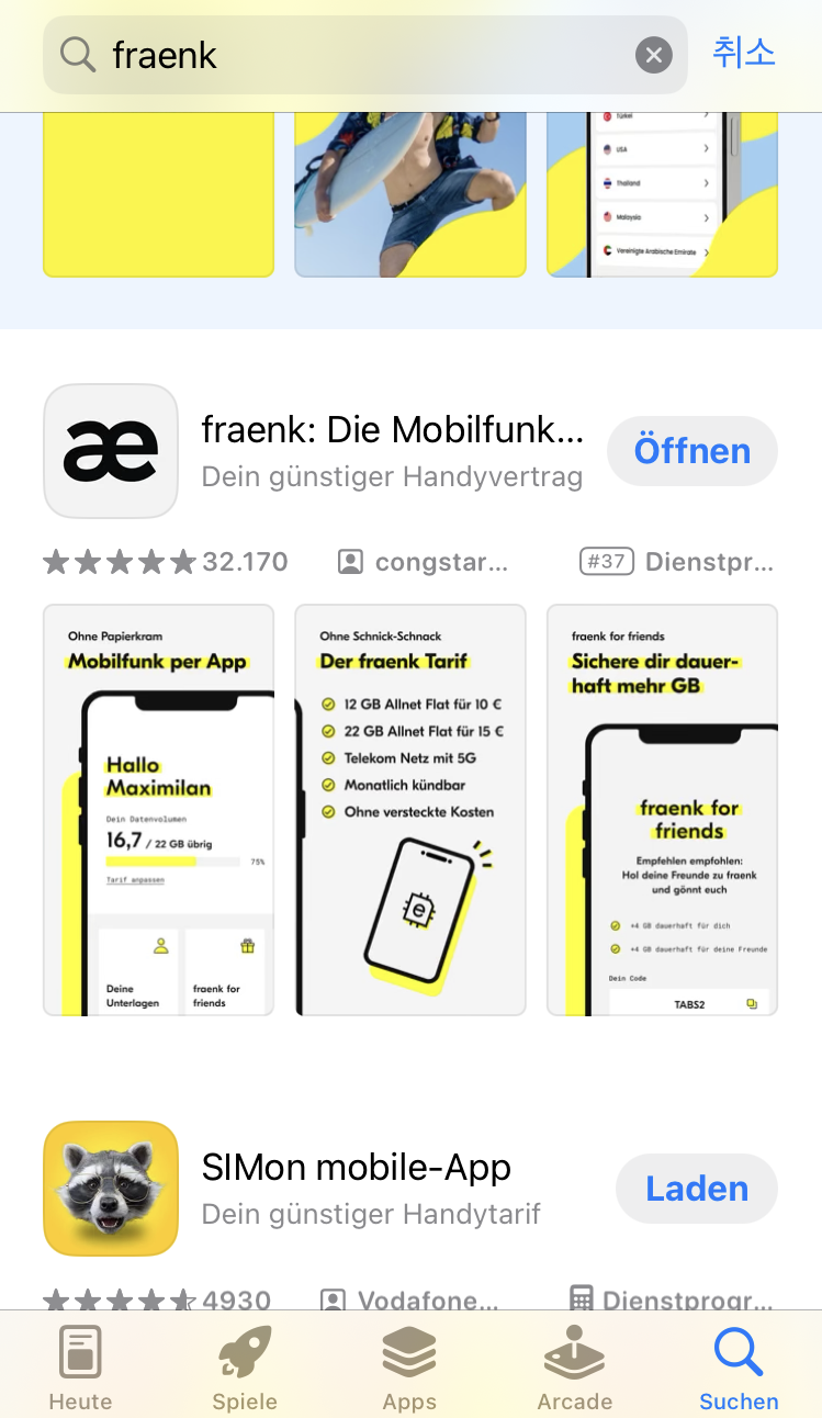1. 독일 앱스토어에 들어가서 fraenk를 설치한다.